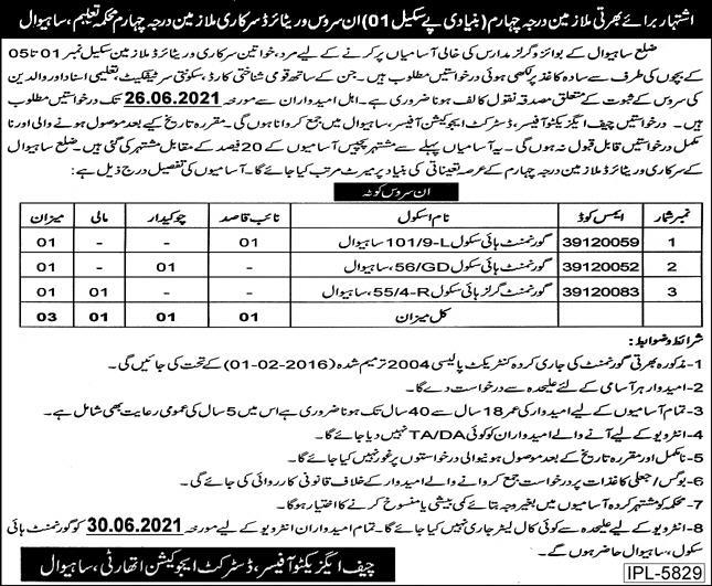 District Education Authority DEA Sahiwal, Primary & Secondary Healthcare Department P&SHD, Government of Punjab is looking for experienced candidates for the posts of Naib Qasid, Chowkidar, Mali.